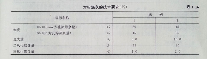 三,對用于水泥和混凝土中的粉煤灰的技術(shù)要求: